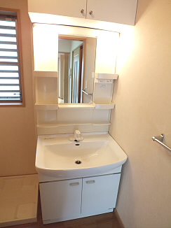 上にも下にも棚が付いている独立洗面台