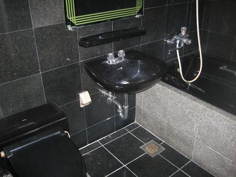 壁も床も黒の石タイルを使っていてこれだったらお風呂とトイレ一緒でもあると思います