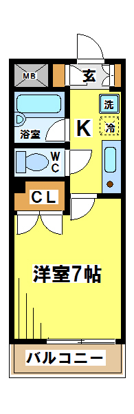 間取り 1K 専有面積 26.08㎡