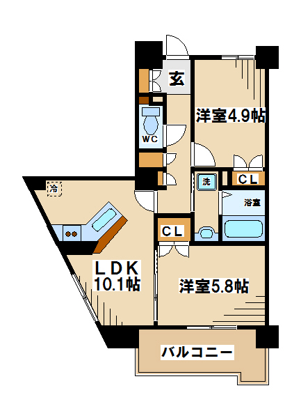 間取り 2DK 専有面積 35㎡