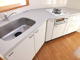 ガスキッチンは2口コンロがすでに入っております