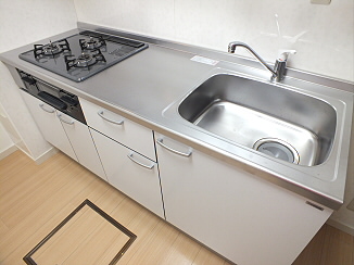 キッチンは嬉しいガス2口のシステムキッチン