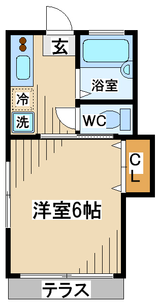 間取り 1K 専有面積 21.5平米
