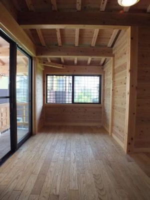 その結果、家をまるまる杉板で覆う自然素材のさわやかな空間が生まれます。