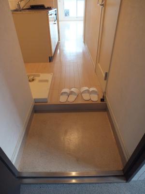 玄関部分は、大理石風タイル張りで