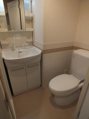 パウダールームにはウォシュレット付トイレと独立洗面台