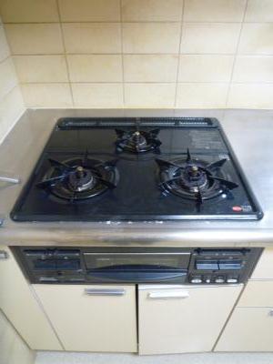 キッチンはシステムキッチンで3口のガスコンロ(グリル付き)っす