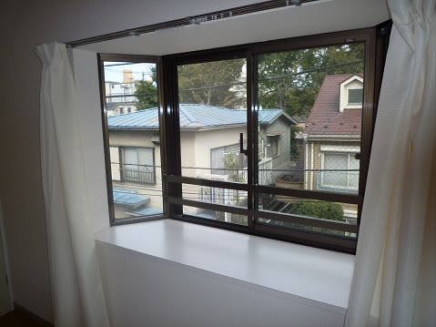 こちらのお部屋には大きな出窓がついていてお部屋はとっても明るいです