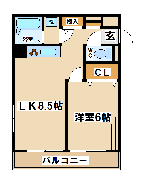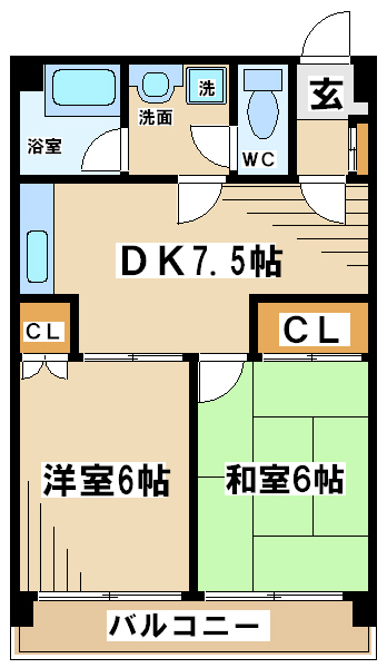 振り分けタイプのお部屋となっており大変使い易い間取りとなっております
