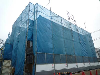 まだまだ建築中ですので、ベールに包まれたままの外観ですが、感じ取ってくださいね(笑)
