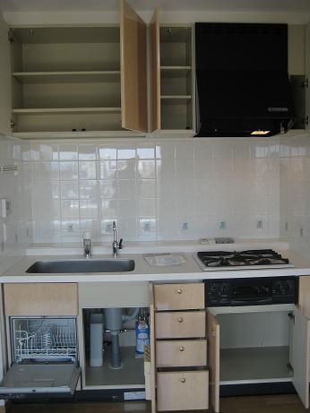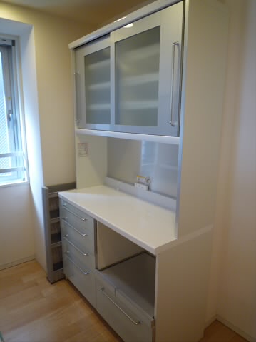 大型の食器棚もついていて大変機能的なキッチンです