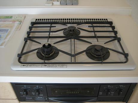 グリル付3口ガスコンロで一度に沢山の料理の調理をして頂けます