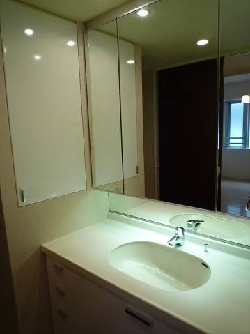 独立洗面台も3面鏡のとっても大きな洗面台ですね