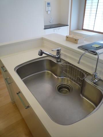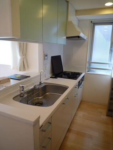 明る目の色のキッチンで清潔感があり作業台・シンクも広々としておりますので