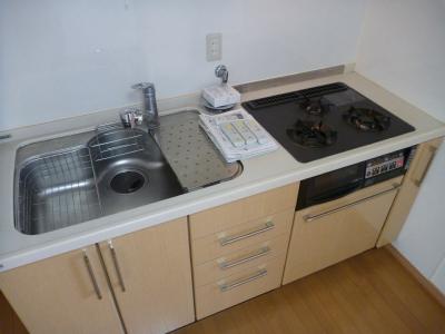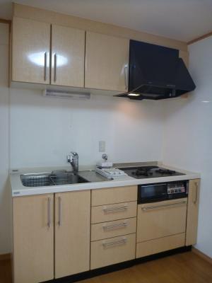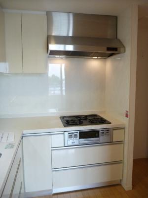 キッチンは3口のグリル付システムキッチンです