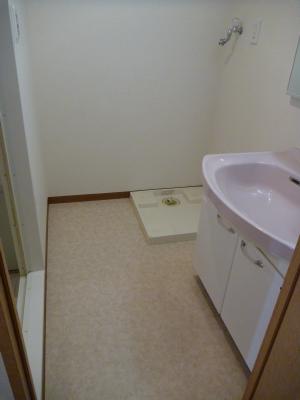 脱衣場には洗濯機置場と洗面台があります