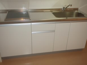 キッチンは2口ガスコンロのシステムキッチンとなっており
