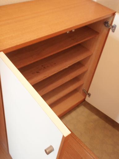 玄関には上下に収納がある下駄箱があります。