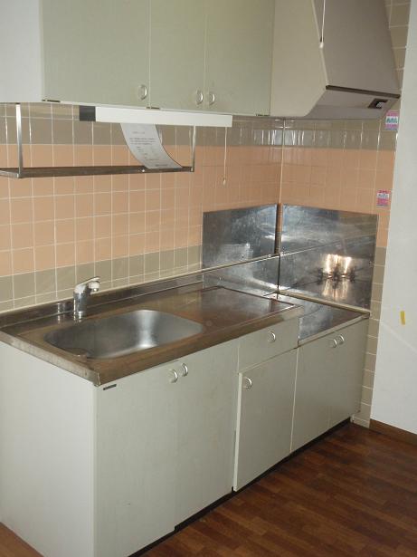 明る目の色のキッチンで清潔感があり作業台・シンクも広々としておりますので