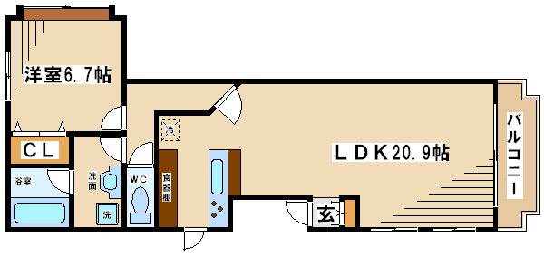 ちょっと見にくいんですが、何とLDKだけで20.9帖もあるんです