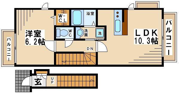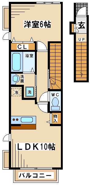 1階が1Kで、2階が1LDKなんです