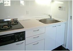 カウンター付システムキッチン(ガス3口コンログリル付)
