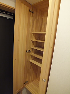 玄関開けますと、大きい靴箱がこんにちは
