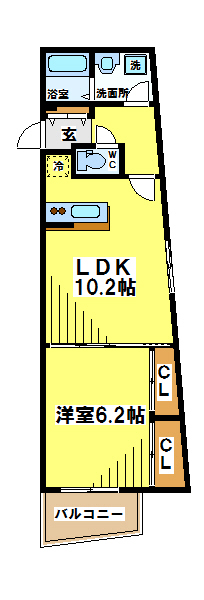 間取り 1K 専有面積 20㎡