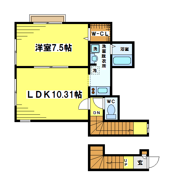 間取り 1K+ロフト 専有面積:21.28㎡