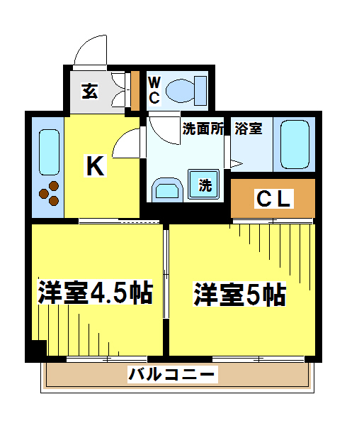 間取り 2K 専有面積:26.45㎡