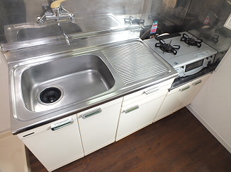 キッチンは2口のガスコンロを設置できるタイプです