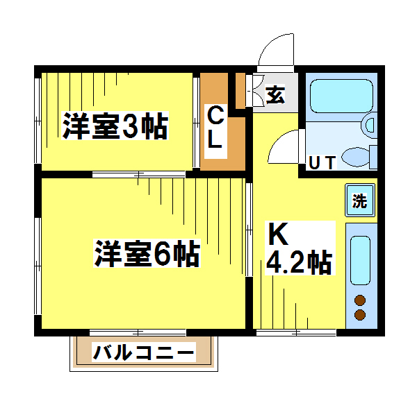 間取り 2K 専有面積:26.33㎡