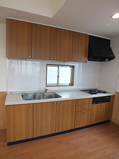 キッチンは二口のガスコンロが設置可能タイプとなっており